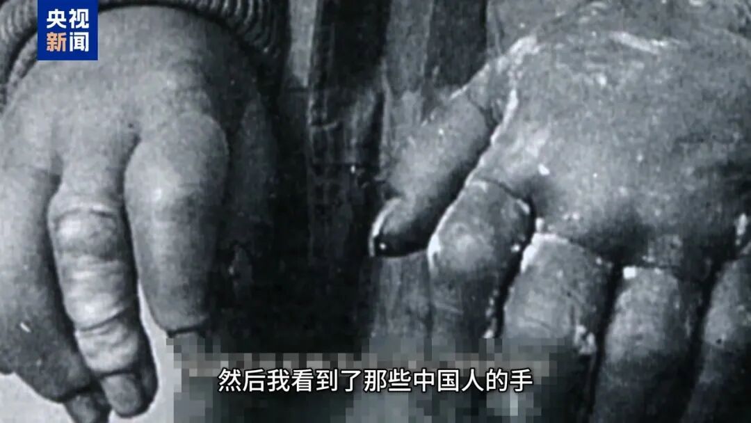 原侵华日军第七三一部队宪兵班队员仓员悟:“我亲眼看见过人体实验,那是在1940年的12月份,我进入实验室看见5名中国犯人坐在长椅上。我看到了那些中国人的手,其中3个人的手指全部变为黑色,已经冻掉了,其余2人的手指也变成了黑色,只剩骨头。当时技师吉村寿人向我解释,这种情况是冻伤实验的结果。”